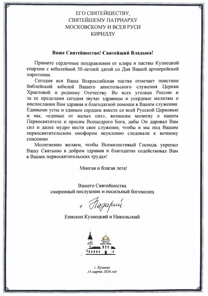 ИНТЕРВЬЮ ЕПИСКОПА КУЗНЕЦКОГО И НИКОЛЬСКОГО НАЗАРИЯ  Читать далее