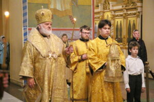 Вечером 4 октября 2025 года, в канун Недели 17-й по Пятидесятнице, епископ Кузнецкий и Никольский Назарий совершил всенощное бдение в Вознесенском кафедральном соборе Кузнецка.