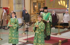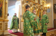Его Преосвященству сослужили: ключарь собора иерей Сергий Боровиков, протоиерей Александр Савочкин, иерей Максим Мальцев, иерей Алексий Родионов, иерей Сергий Галий, иеродиакон Анатолий (Волков) и диакон Николай Добролюбов. Хор под управлением регента Неониллы Горониной исполнил богослужебные песнопения.