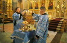 Во время утрени, по прочтении Святого Евангелия, владыка Назарий помазал освященным елеем верующих, собравшихся в храме накануне праздника Покрова Пресвятой Богородицы.