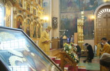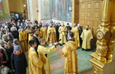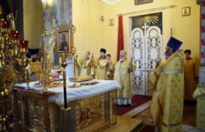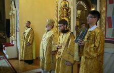 Его Преосвященству сослужили: ключарь собора иерей Сергий Боровиков, протоиерей Александр Савочкин, иерей Михаил Гудков, иеродиакон Анатолий (Волков), диаконы Алексей Ушмотьев и Николай Добролюбов.