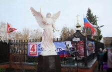 Преосвященный владыка прочитал молитву и окропил памятник святой водой.