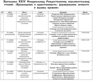 Программа XXIV Епархиальных Рождественских образовательных чтений