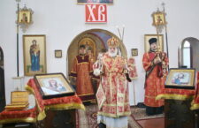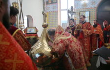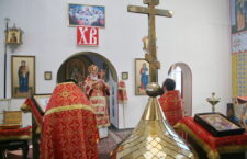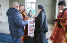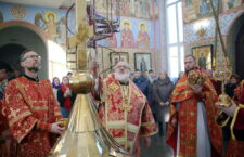 После Литургии епископ Назарий совершил освящение креста и купола строящейся колокольни.