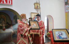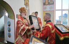 В завершение праздника Владыка Назарий поздравил прихожан, поблагодарил ктитора храма Валерия Васильевича Кемешева за труды по строительству и благоустройству храма, и подарил приходу икону святых Бориса и Глеба.