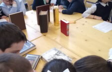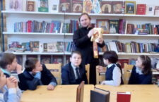 В завершение встречи иерей Алексий Родионов продемонстрировал школьникам богослужебное Евангелие.
