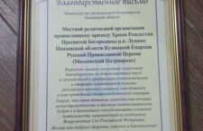 Особую благодарность за помощь фронту от Министерства региональной безопасности Пензенской области получил приход храма Рождества Пресвятой Богородицы р.п. Лунино.