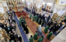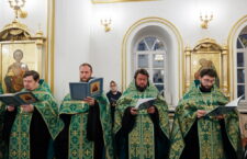 Богослужебные песнопения исполнил Смешанный хор Спасо-Вознесенского собора г. Ульяновска под управлением регента Романа Хитёва.