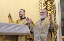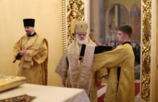 Его Преосвященству сослужили: ключарь собора иерей Сергий Боровиков, протоиерей Александр Савочкин, иеродиакон Анатолий (Волков) и диакон Николай Добролюбов. За богослужением пел хор под управлением регента Неониллы Горониной.