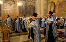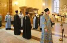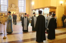 Богослужебные песнопения исполнил Архиерейский хор кафедрального собора.