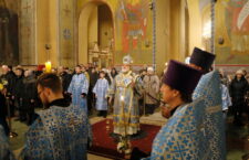 За вечерним богослужением была совершена лития с освящением хлебов, пшеницы, вина и елея. Во время утрени, по прочтении Святого Евангелия, епископ Назарий и иерей Михаил Гудков помазали освященным елеем верующих, собравшихся в собор в канун праздника Сретения Господня.