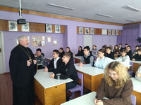 17 февраля протоиерей Андрей Романов, настоятель храма во имя Святой Троицы села Ясная Поляна Кузнецкого района, встретился с учащимися 8-10 классов Яснополянской средней школы.