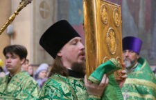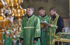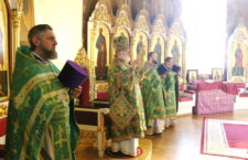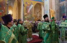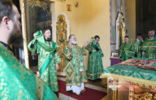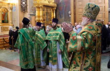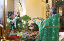 Его Преосвященству сослужили клирики собора: ключарь иерей Сергий Боровиков, протоиерей Александр Савочкин, иерей Максим Мальцев, иерей Михаил Гудков, иеродиакон Анатолий (Волков) и диакон Николай Добролюбов.
