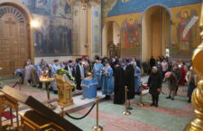 Затем епископ Назарий помазал освященным елеем верующих, собравшихся в храме в канун праздника Благовещения Пресвятой Богородицы.