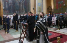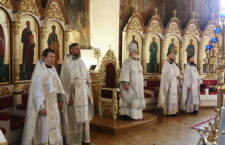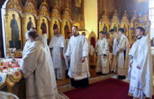 Его Преосвященству сослужили клирики собора: ключарь иерей Сергий Боровиков, протоиерей Александр Савочкин, иерей Максим Мальцев, иерей Михаил Гудков, иеродиакон Анатолий (Волков) и диакон Николай Добролюбов.