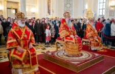 После богослужения Высокопреосвященный владыка Серафим преподал для целования Крест Господень всем собравшимся в храме, а все желающие смогли лично поздравить правящего архипастыря с Воскресением Христовым.