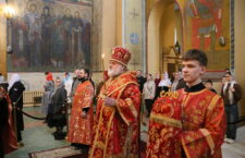 Его Преосвященству сослужили клирики собора: ключарь иерей Сергий Боровиков, протоиерей Александр Савочкин, иерей Максим Мальцев, иерей Михаил Гудков, иерей Сергий Галий, иеродиакон Анатолий (Волков) и диакон Николай Добролюбов.