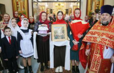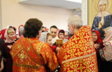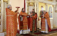 На малом входе, по указу Святейшего Патриарха Кирилла, благочинный Никольского округа и настоятель храма протоиерей Владимир Кознов был удостоен права служения с отверстыми царскими вратами по «Отче наш…» за усердное служение Святой Церкви.