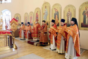 Его Преосвященству сослужили: секретарь Кузнецкой епархии протоиерей Борис Весновский, благочинный Никольского округа и настоятель храма протоиерей Владимир Кознов, иереи Сергий Боровиков, Александр Морозов, Николай Родионов, иеромонах Сергий (Смирнов), иеродиаконы Анатолий (Волков) и Митрофан (Шалимов).