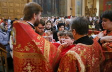 Богослужение возглавил ключарь собора иерей Сергий Боровиков. Ему сослужили протоиерей Александр Савочкин, иерей Максим Мальцев, иерей Сергий Галий, иеродиакон Анатолий (Волков) и диакон Николай Добролюбов.