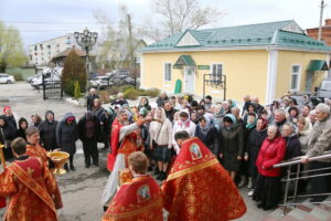 После заамвонной молитвы состоялся пасхальный крестный ход вокруг храма. По его завершении было совершено славление святым женам-мироносицам.